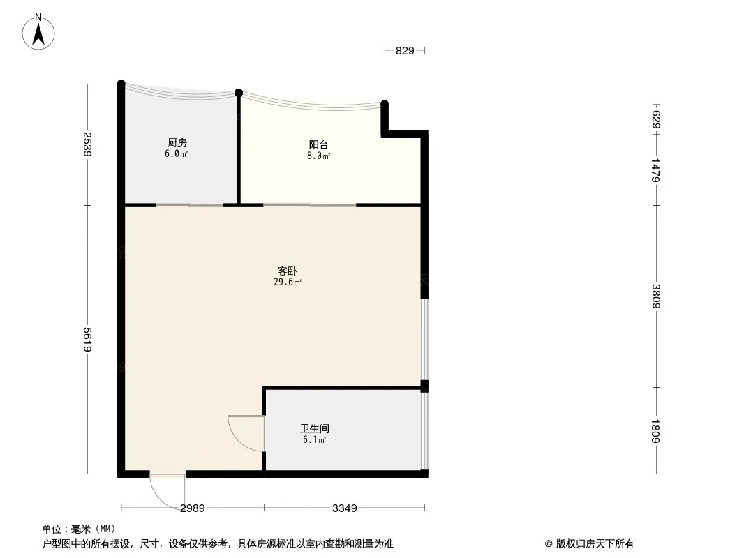 拍了拍你 标准一室一厅 户型方正