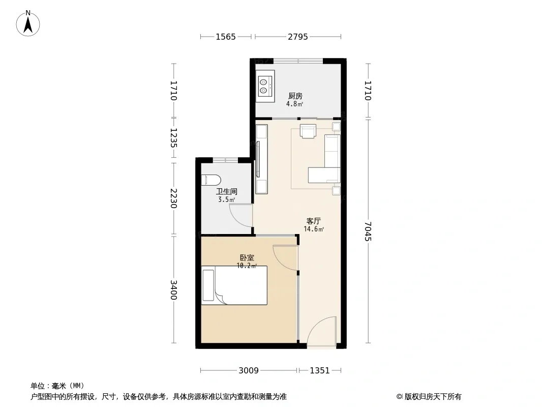 户型齐全,主打明厨,明卫,客厅朝南一居