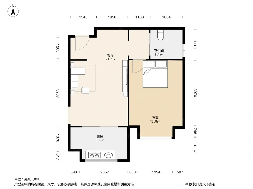 户型齐全,主打明厨,明卫,客厅朝南一居