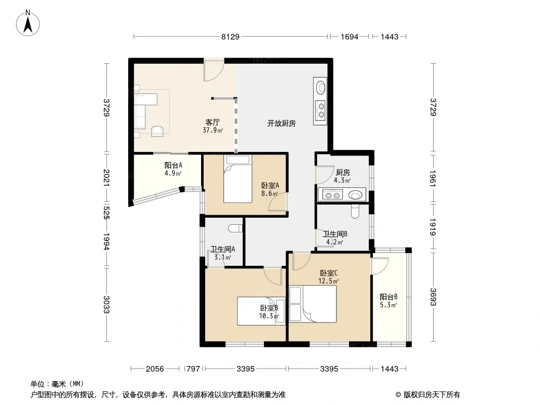 *获取完整户型报告,同时会有免费语音讲解服务