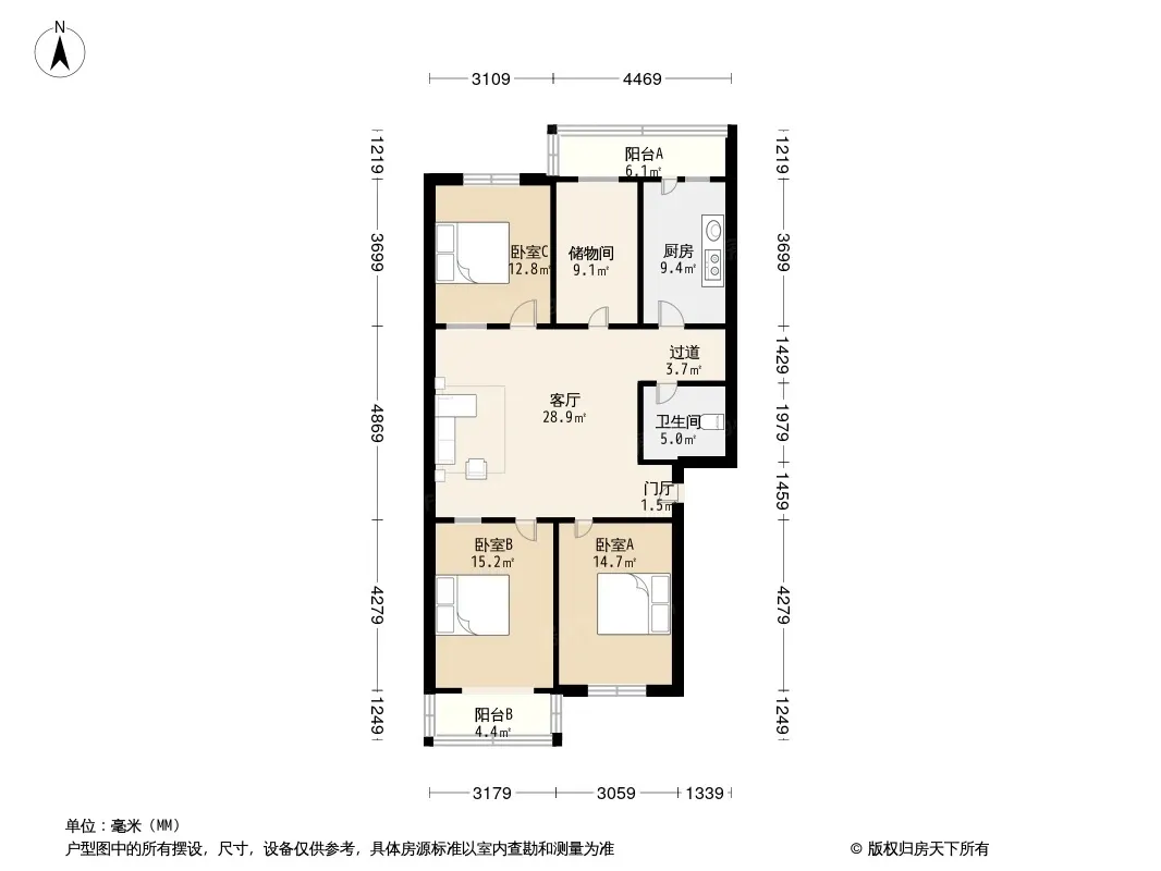 户型齐全,主打明卫,客厅朝南,双阳台,双卧朝南,主卧朝南三居