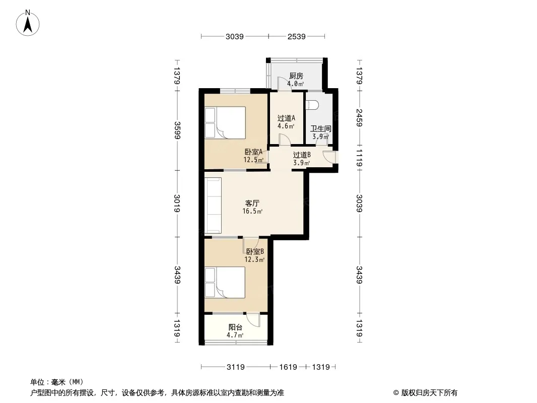 户型齐全,主打明厨,明卫,客厅朝南,全明格局二居