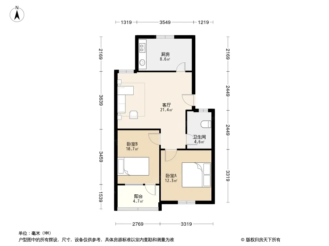 未来路舒适两居室 总价69万 地铁6号线50米