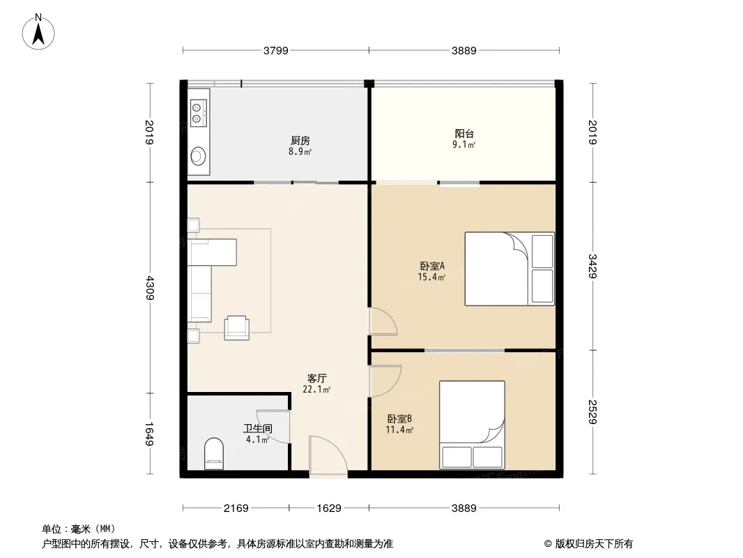 北晨公寓 2室2厅 南