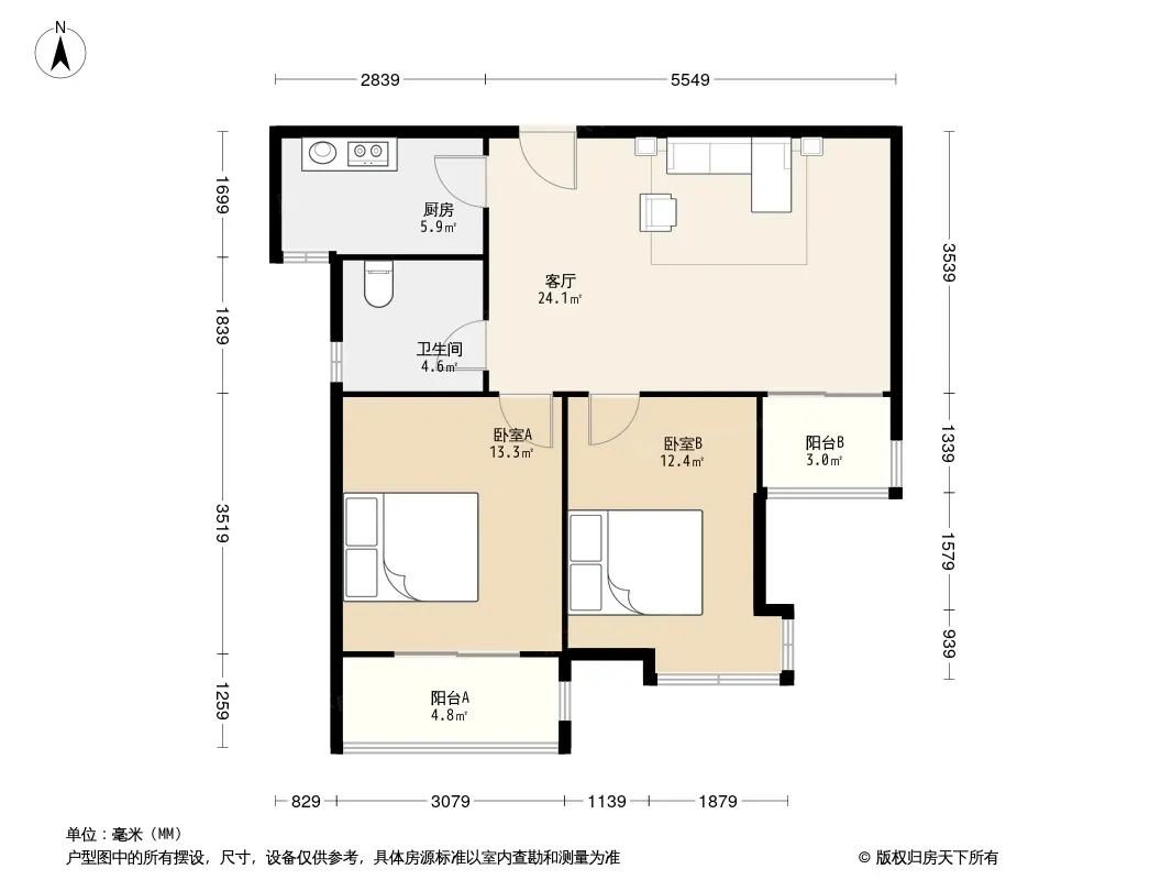 户型齐全,主打明卫,独立衣帽间,明厨,客厅朝南三居