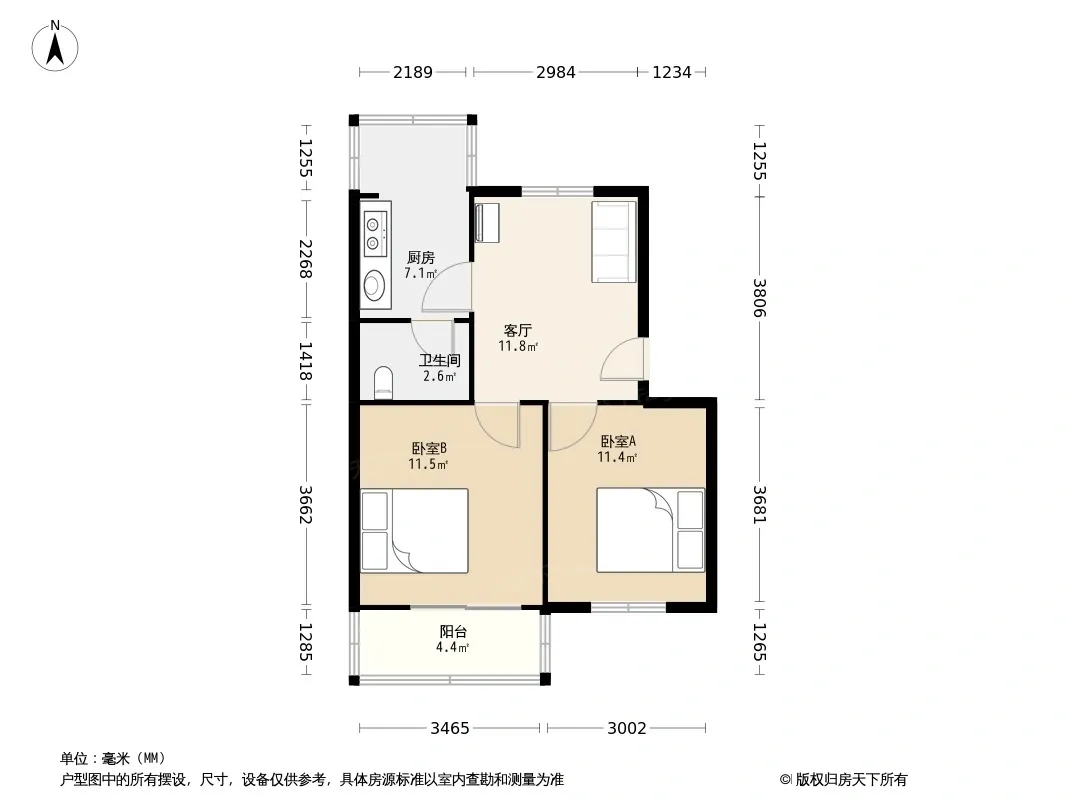 户型齐全,主打明厨,明卫,客厅朝南二居