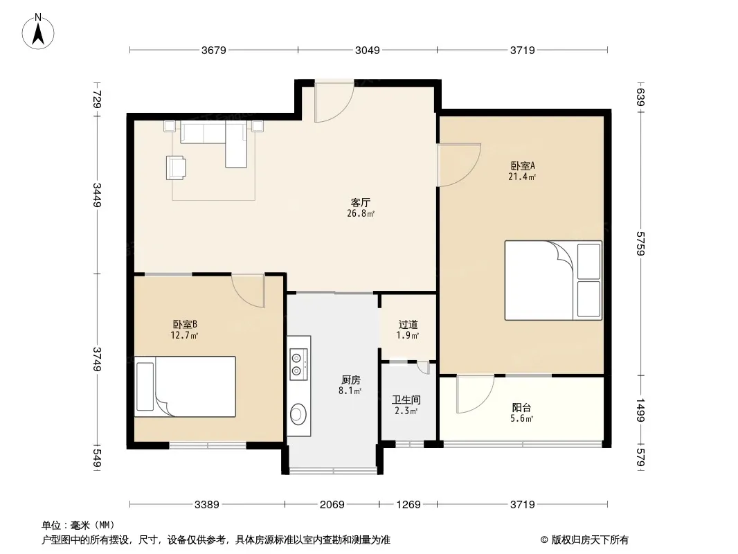 户型齐全,主打明卫,明厨二居