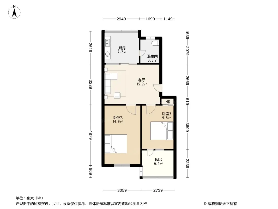 户型齐全,主打明卫,明厨二居