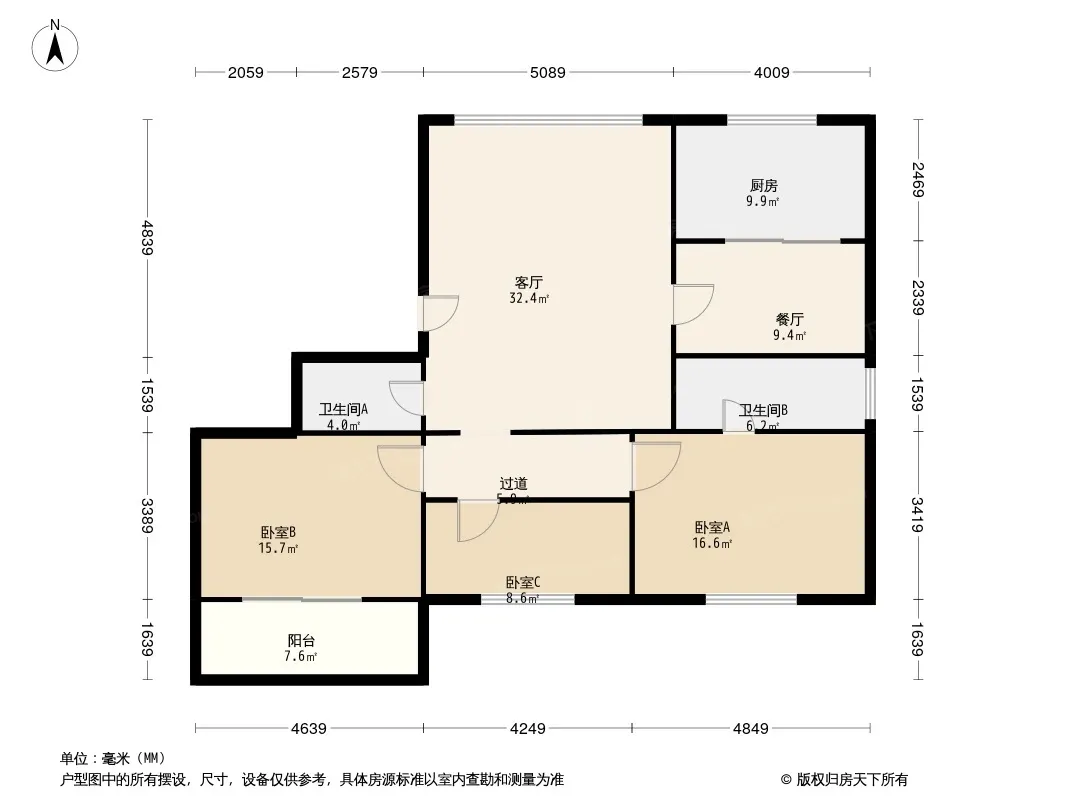 户型齐全,主打明厨,客厅朝南,主卧朝南三居