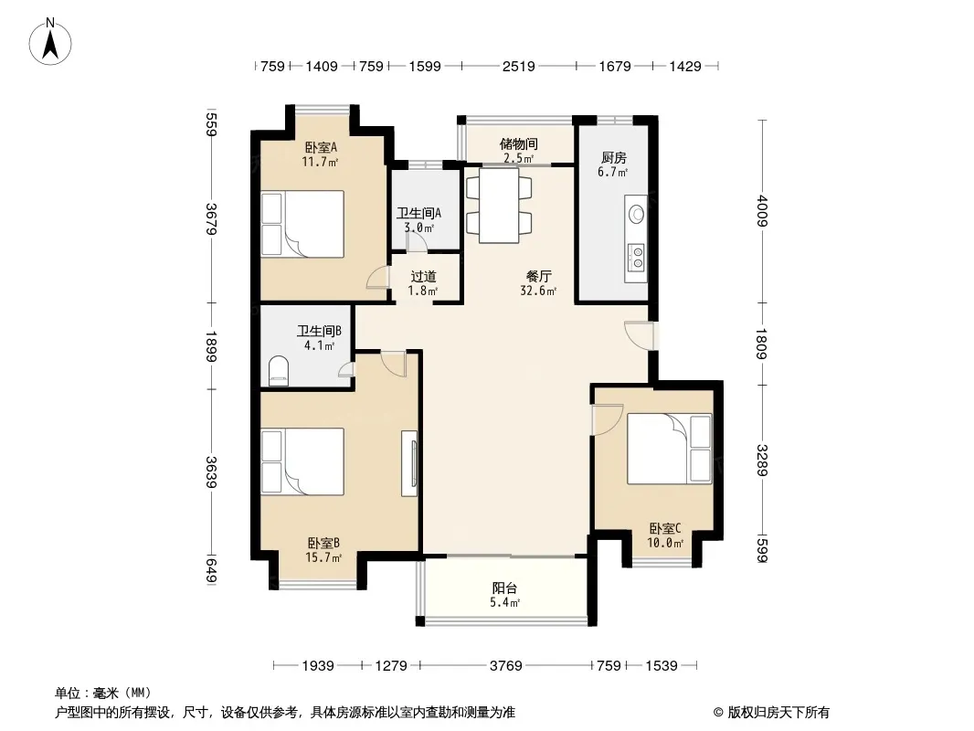 户型齐全,主打明卫,双阳台,双卧朝南三居