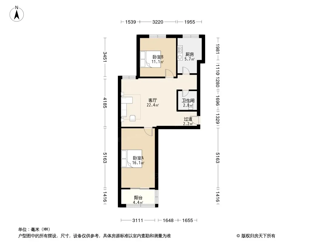 户型齐全,主打明厨,客厅朝南二居