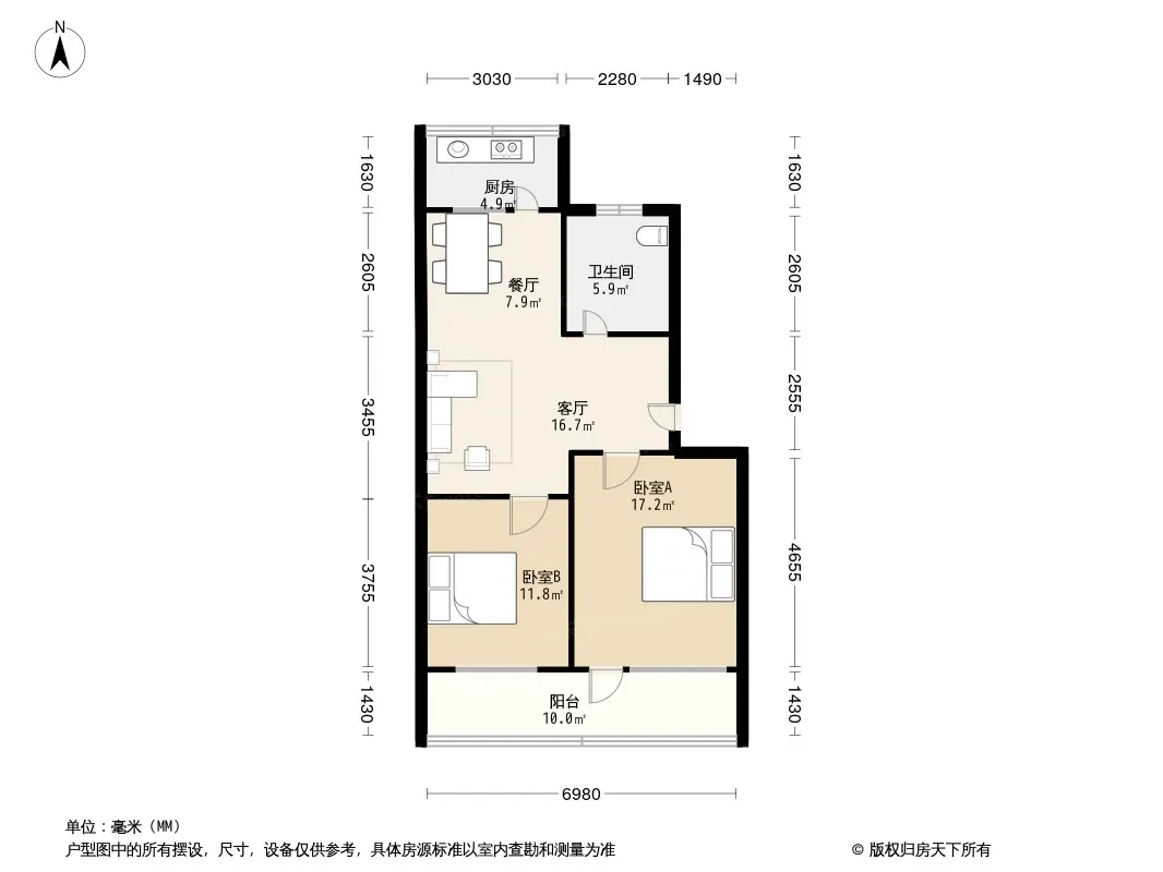 户型齐全,主打明厨二居