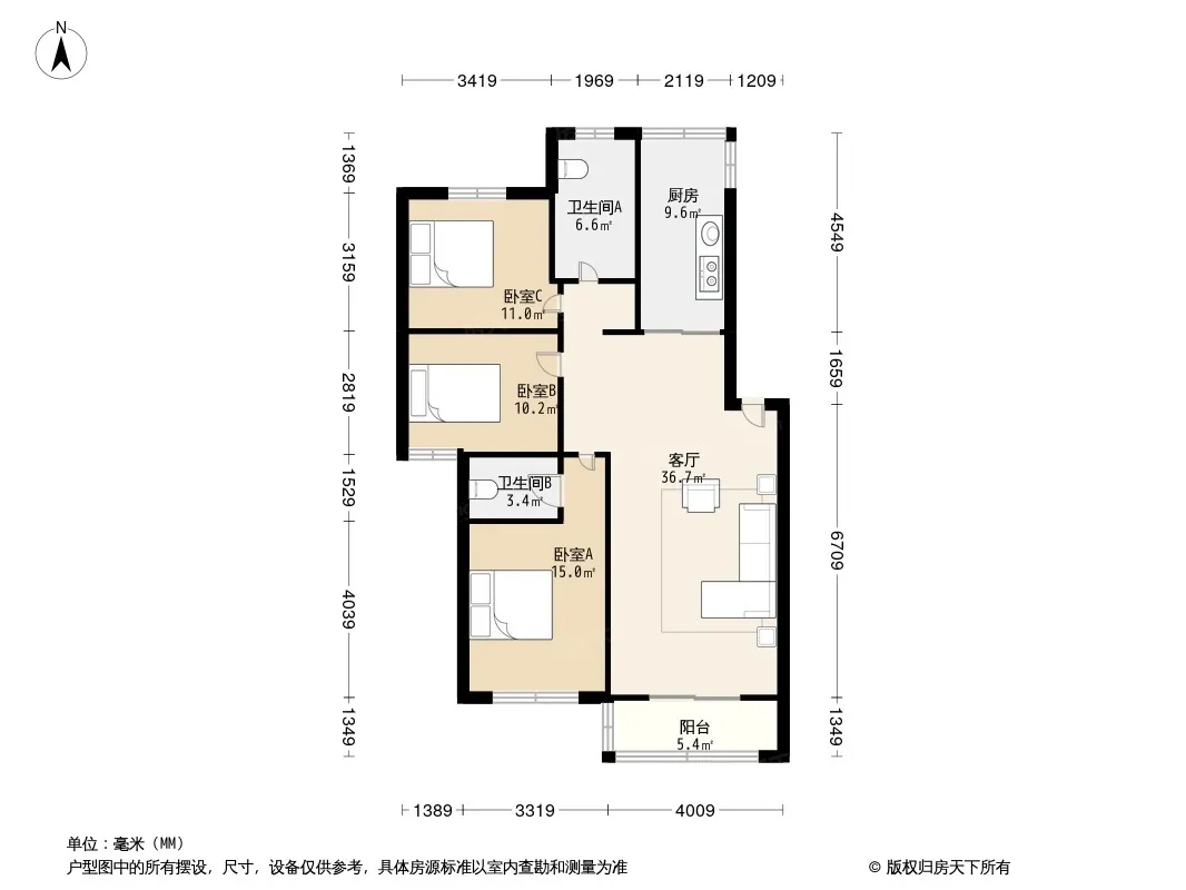 户型齐全,主打户型方正,明厨,明卫,双卧朝南,主卧朝南三居