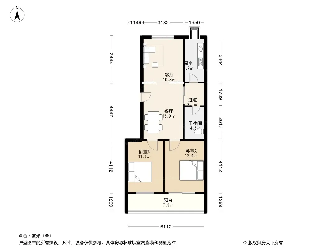 户型齐全,主打户型方正,明厨,客厅朝南,双阳台二居