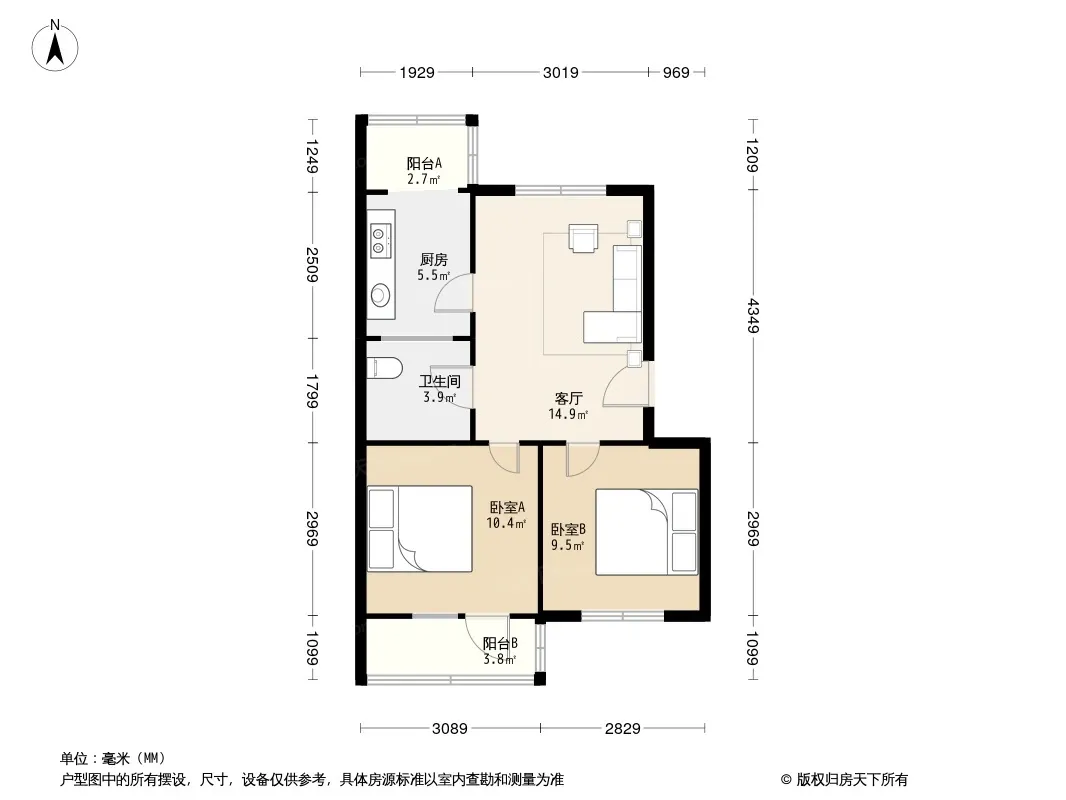 户型齐全,主打明卫,客厅朝南,双阳台,双卧朝南,主卧朝南二居
