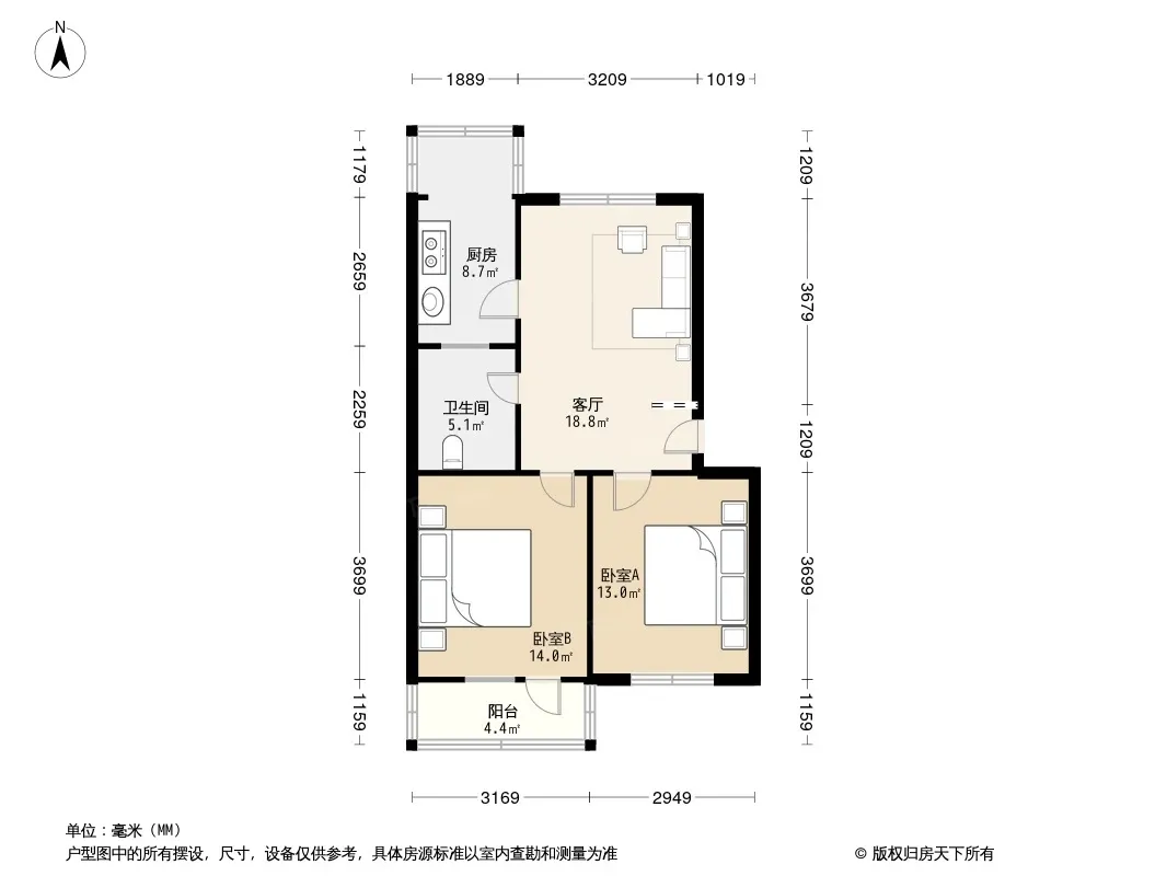 户型齐全,主打明卫,客厅朝南,双阳台,双卧朝南,主卧朝南二居