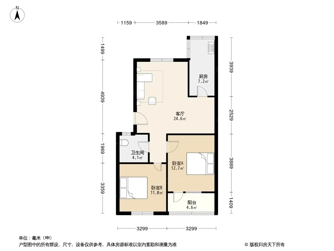 户型齐全,主打明卫,客厅朝南,双阳台,双卧朝南,主卧朝南二居