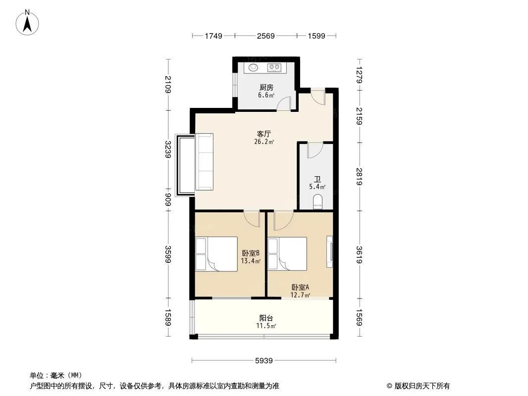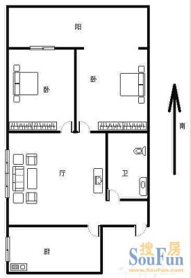 户型齐全,主打明厨,客厅朝南二居