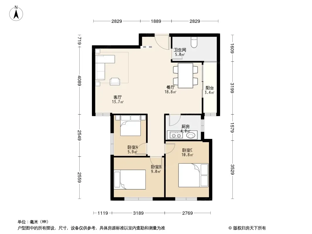 户型齐全,主打明卫,客厅朝南三居
