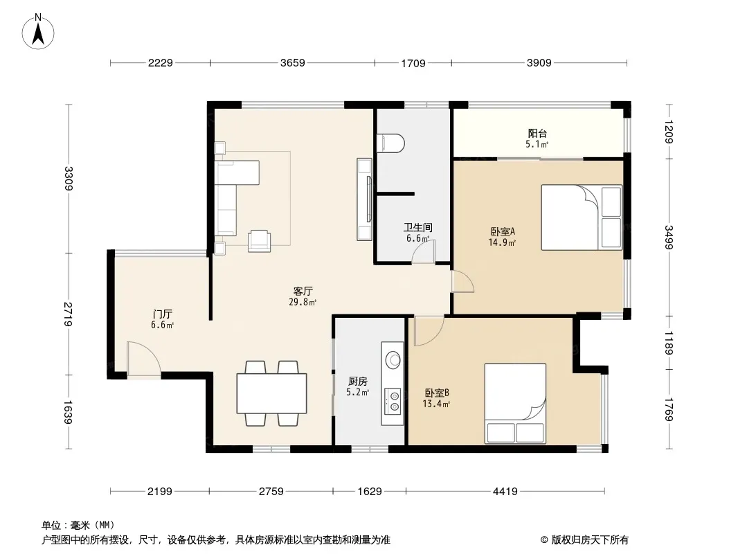 户型齐全,主打户型方正,明厨,明卫,主卧朝南三居