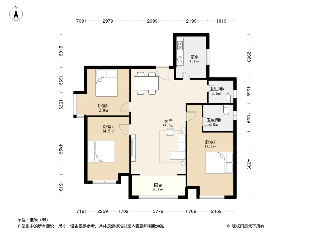 户型齐全,主打户型方正,明厨,明卫,主卧朝南三居