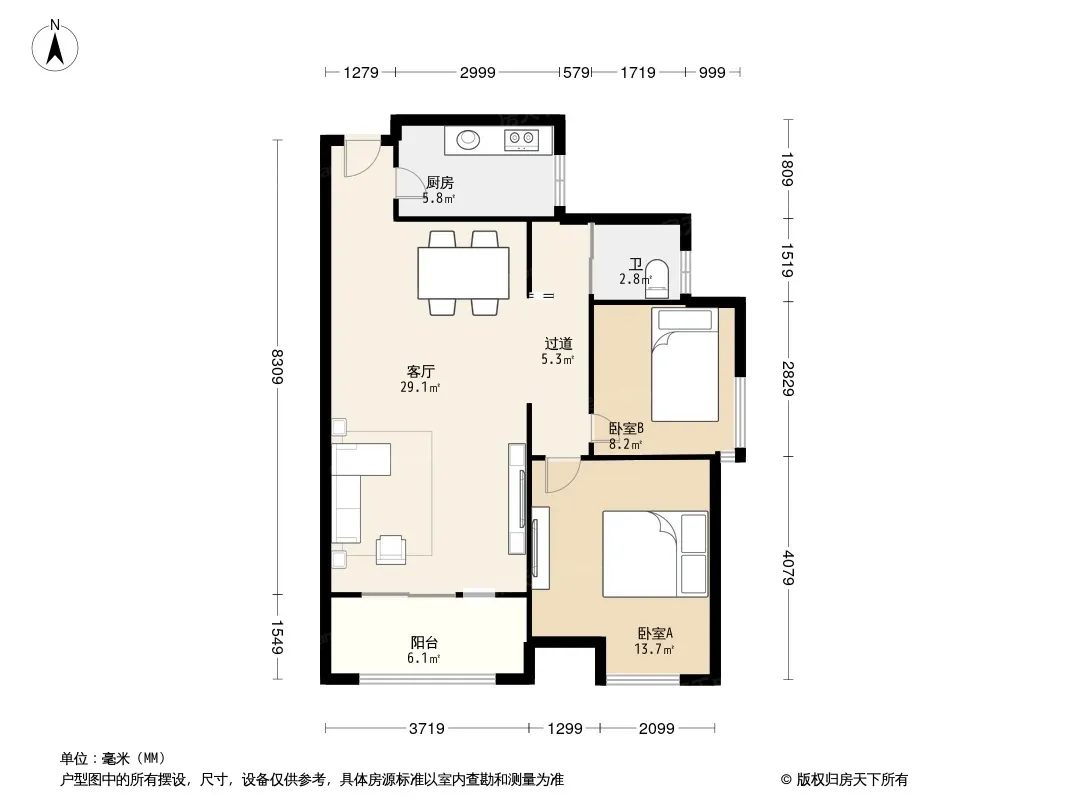 户型齐全,主打户型方正,明厨,明卫,主卧朝南三居