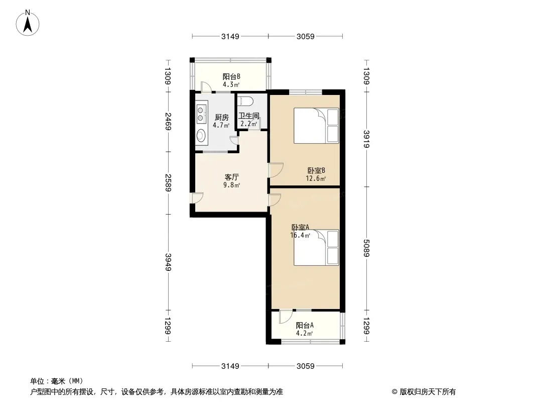 户型齐全,主打明厨,明卫二居