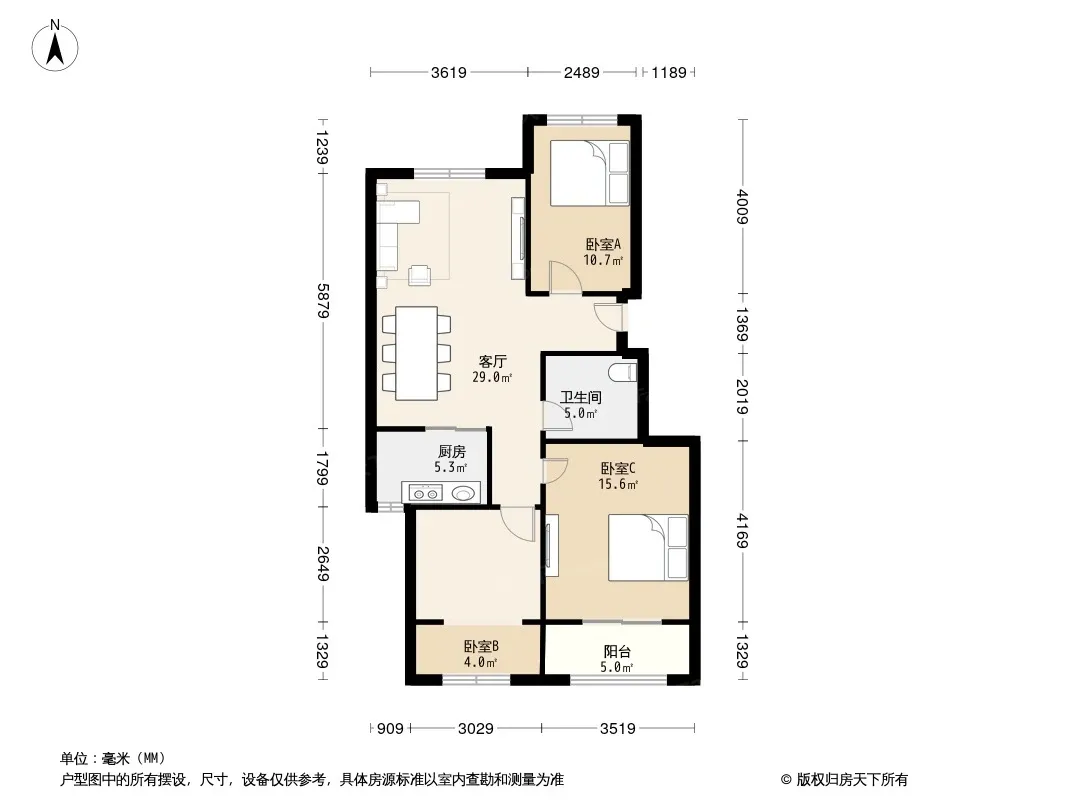 户型齐全,主打明厨,客厅朝南三居