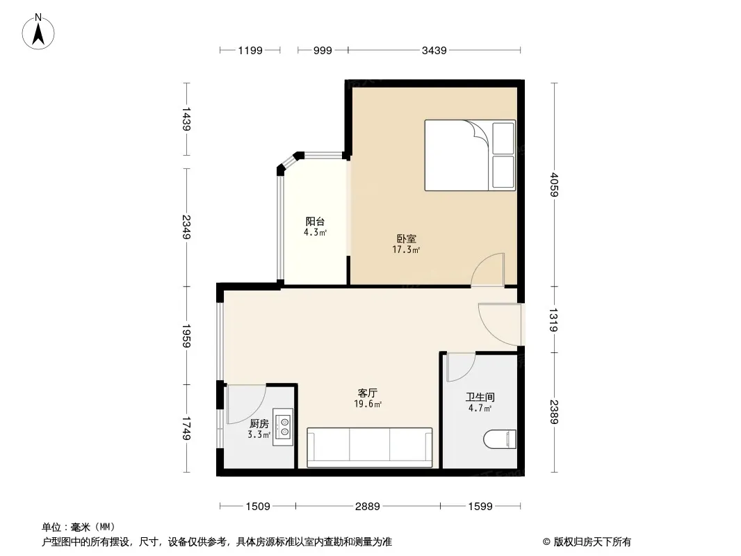 户型齐全,主打明厨,主卧朝南一居