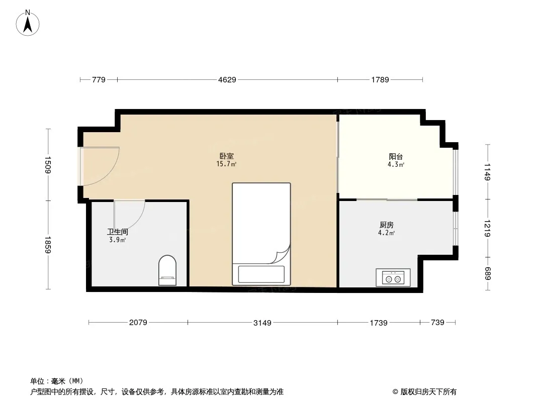 户型齐全,主打双阳台,主卧朝南一居