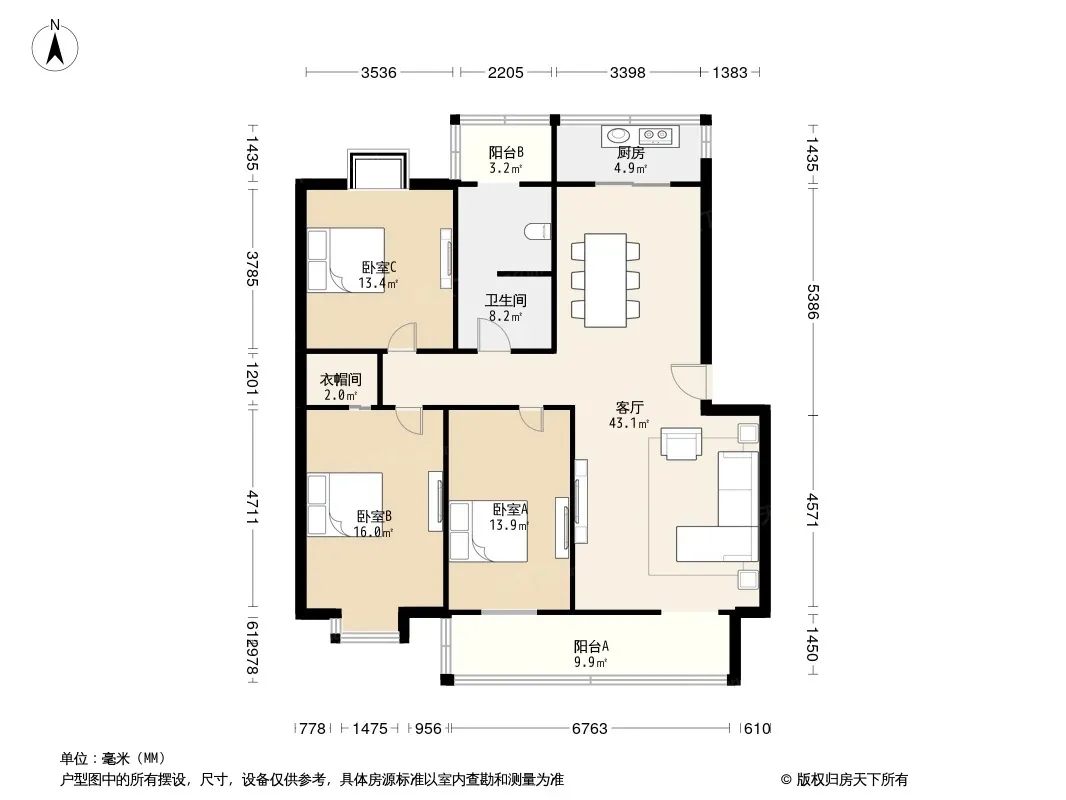 户型齐全,主打独立衣帽间,明厨,双阳台,主卧朝南三居