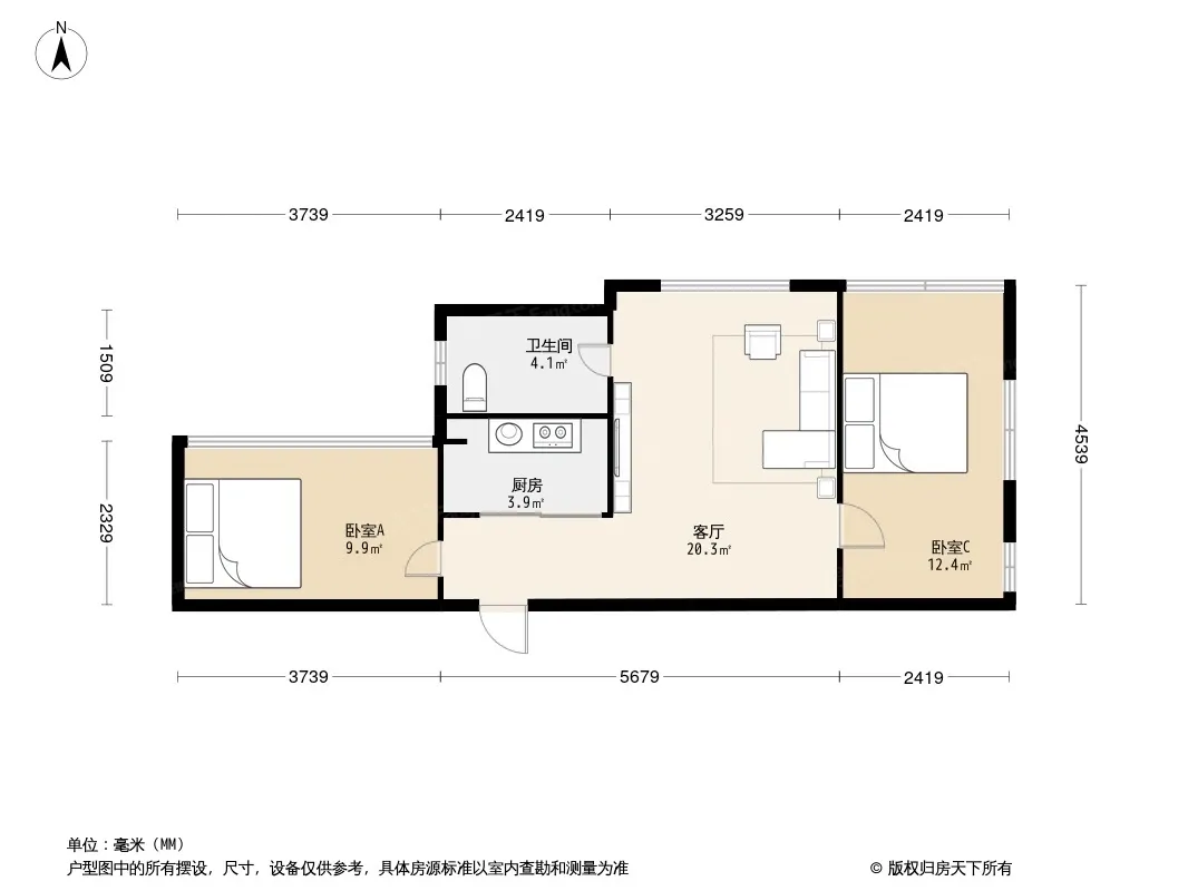 户型齐全,主打二居