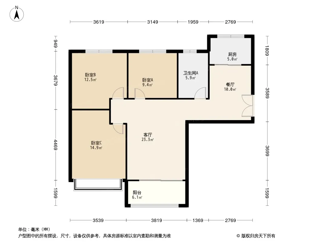 户型齐全,主打南北通透,客厅朝南,主卧朝南三居