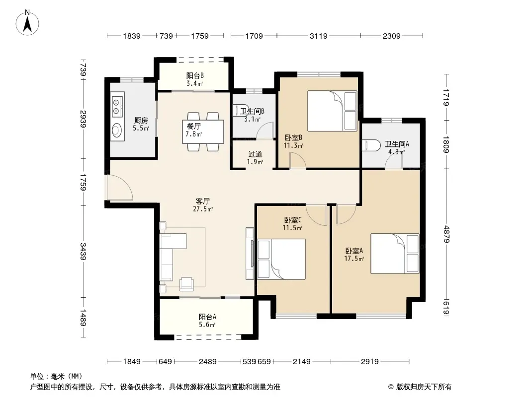 户型齐全,主打南北通透,客厅朝南,主卧朝南三居