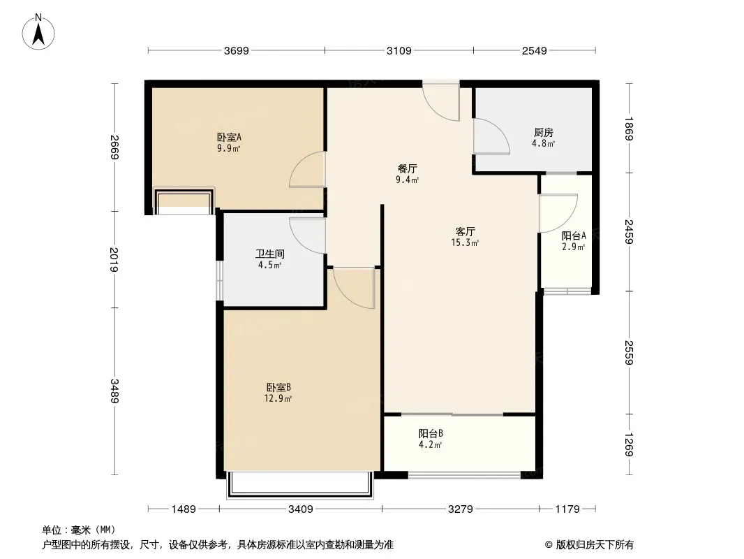 户型齐全,主打南北通透,客厅朝南,主卧朝南三居