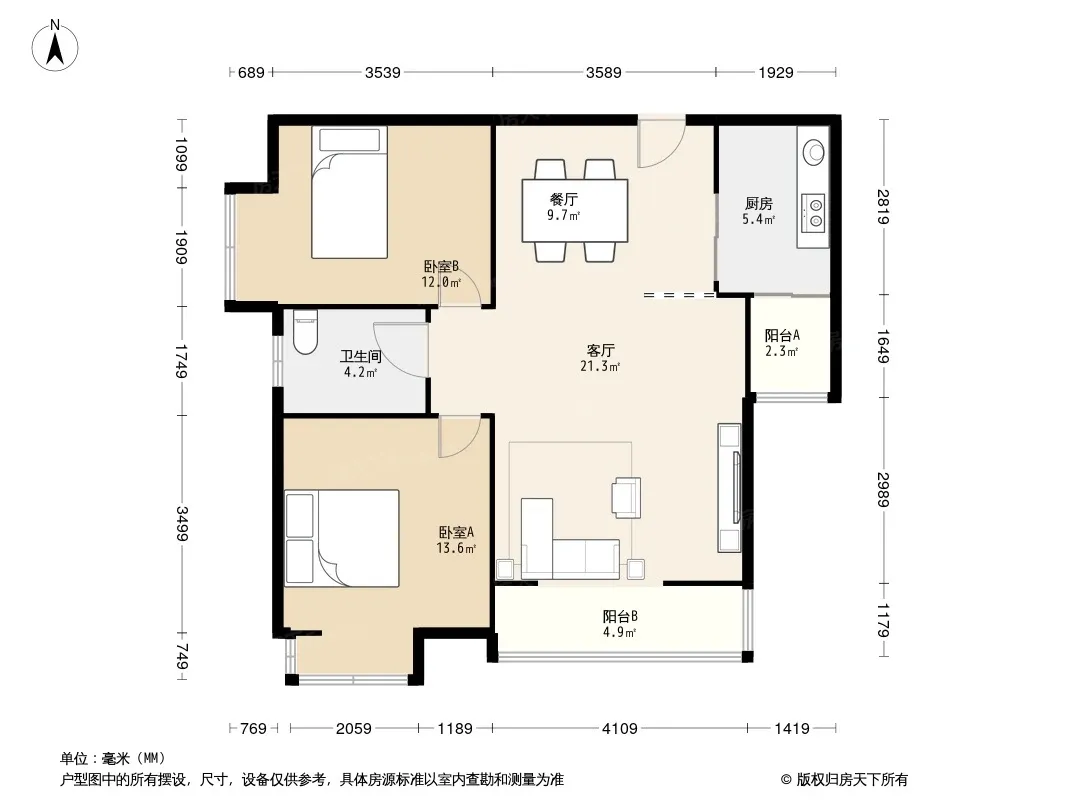 永威东棠 2室1厅 南