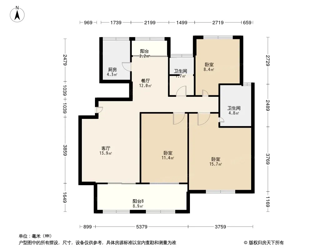 户型齐全,主打户型方正,明卫,明厨,客厅朝南,主卧朝南三居
