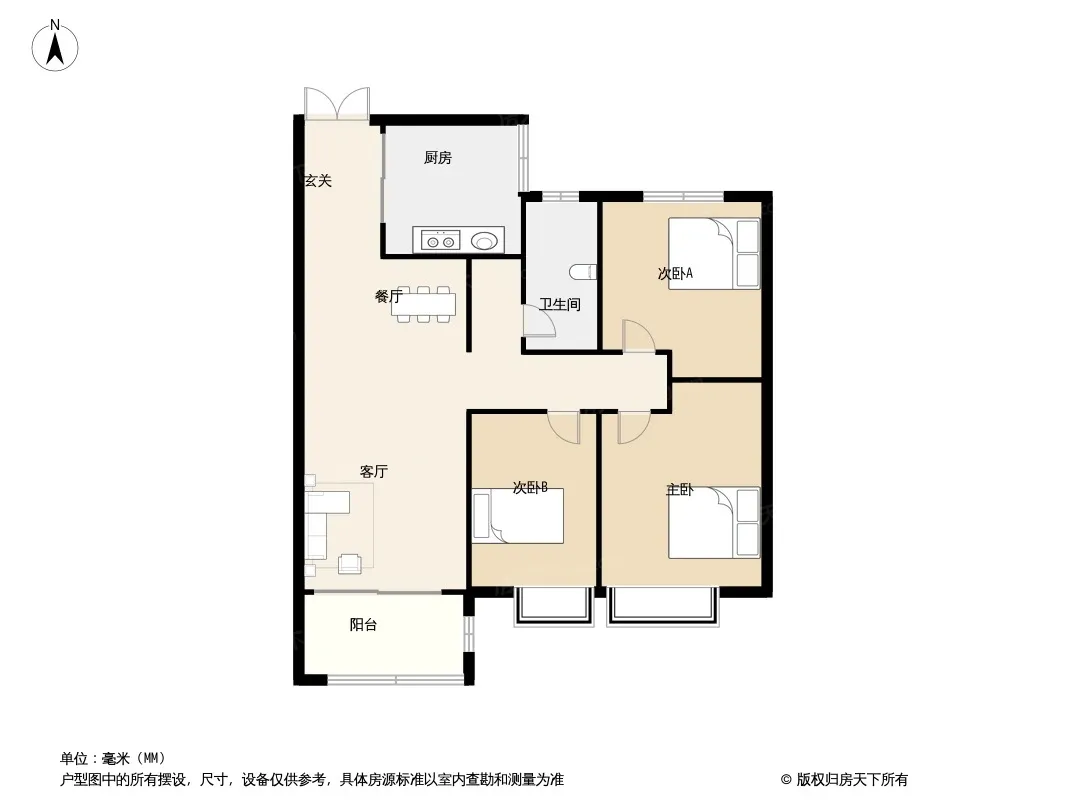户型齐全,主打主卧带卫,干湿分离三居