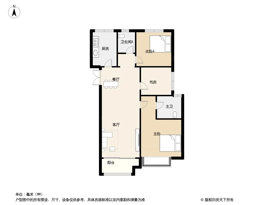 户型齐全,主打主卧带卫,干湿分离三居