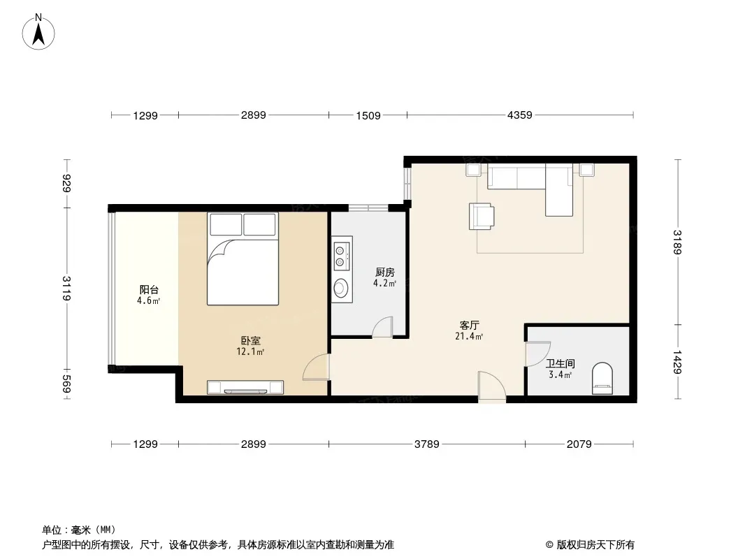 户型齐全,主打明厨,客厅朝南一居