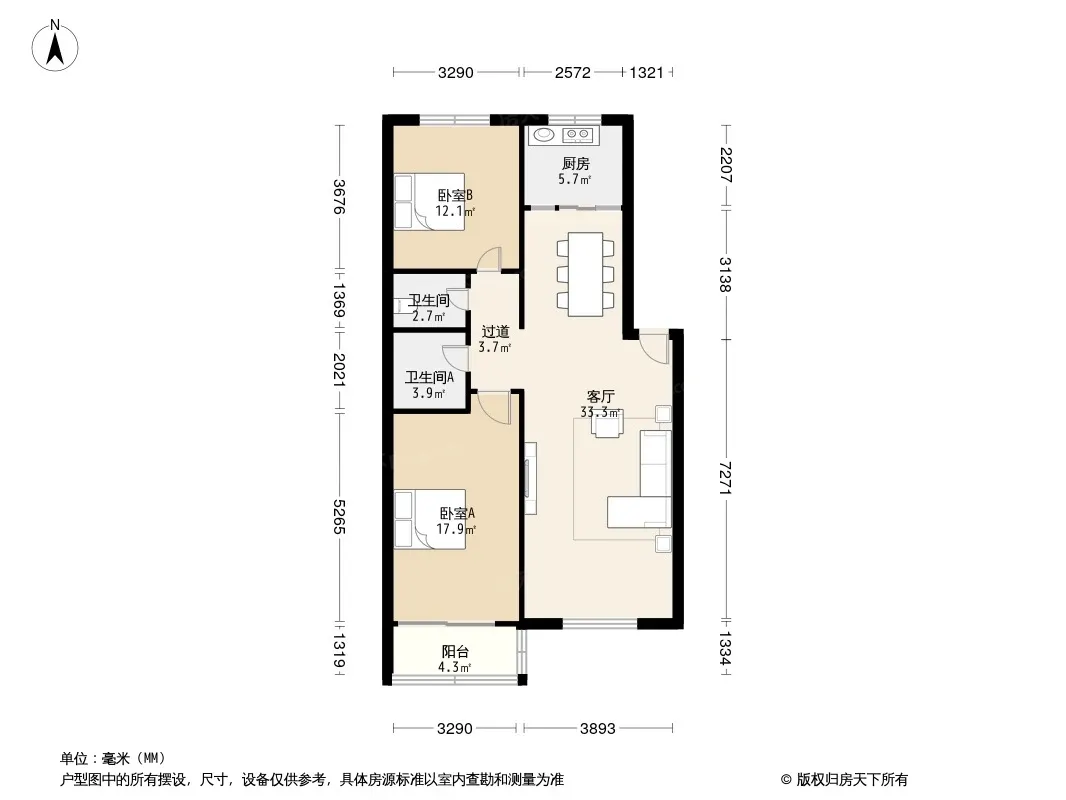 户型齐全,主打客厅朝南,主卧朝南,明厨二居