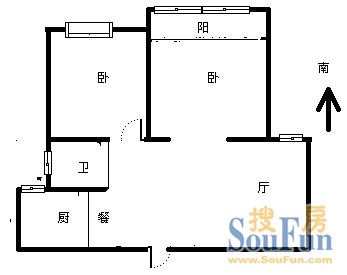 户型齐全,主打明厨,明卫,客厅朝南二居