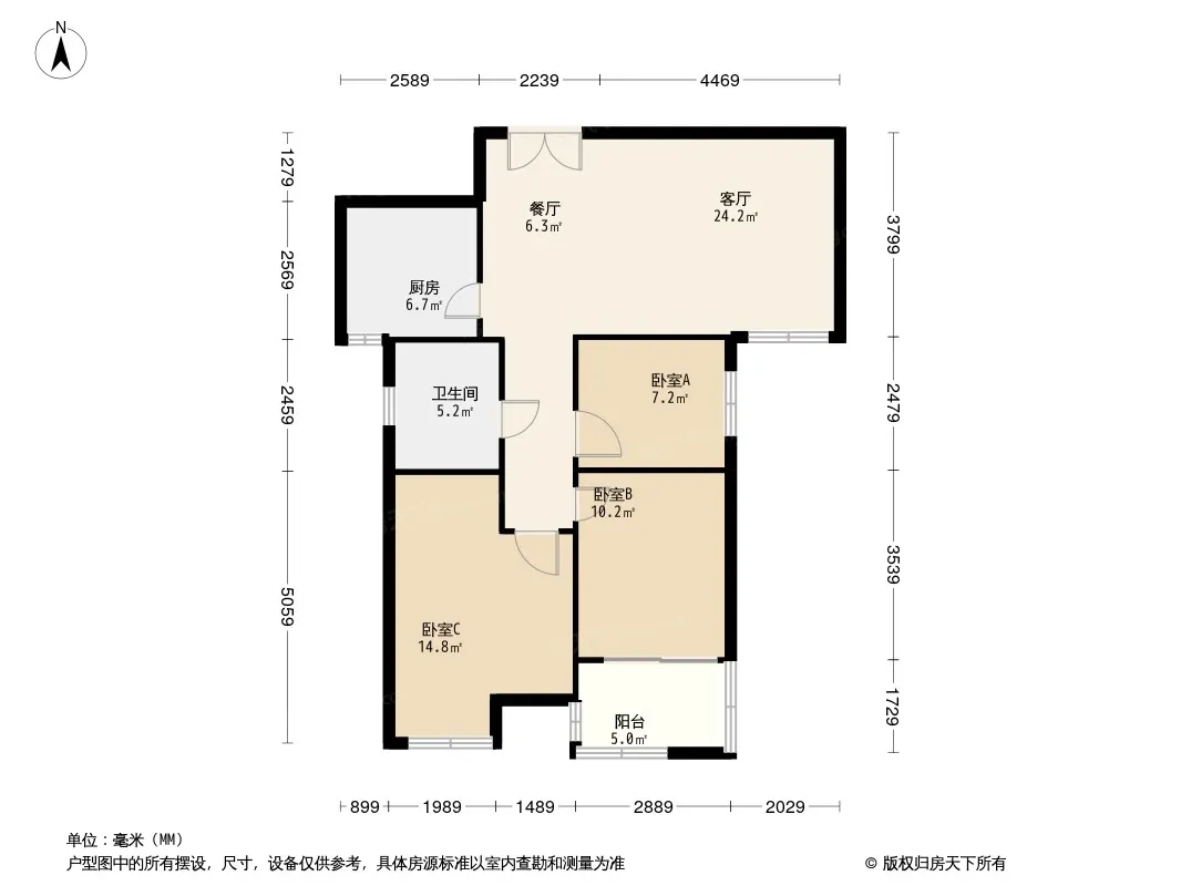 户型齐全,主打厨卫不对门,主卧朝南,卧室带阳台三居