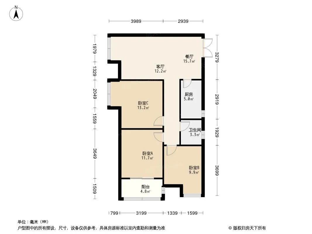 户型齐全,主打厨卫不对门,主卧朝南,卧室带阳台三居