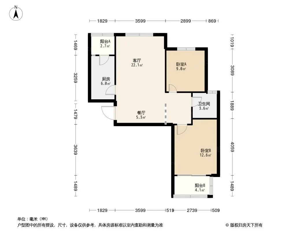 户型齐全,主打客厅朝南,主卧朝南,观景飘窗,干湿分离二居