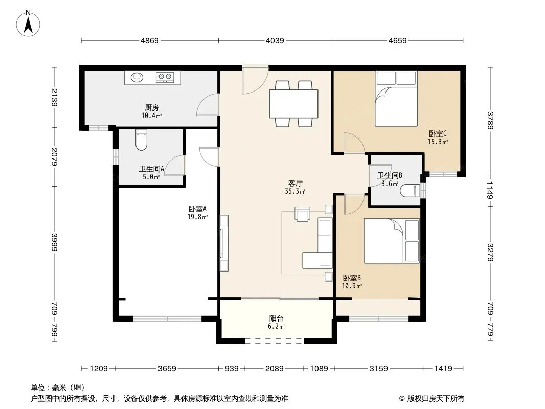 户型齐全,主打南北通透,厨卫不对门,户型方正,全明格局三居
