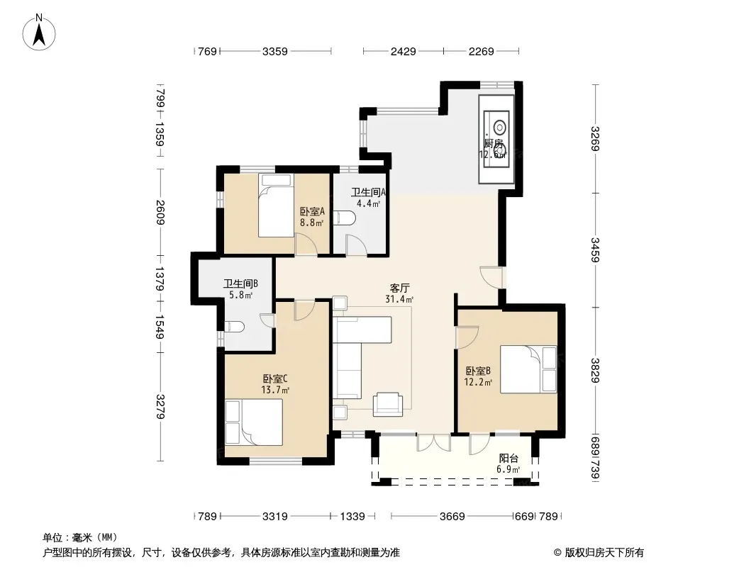 *获取完整户型报告,同时会有免费语音讲解服务