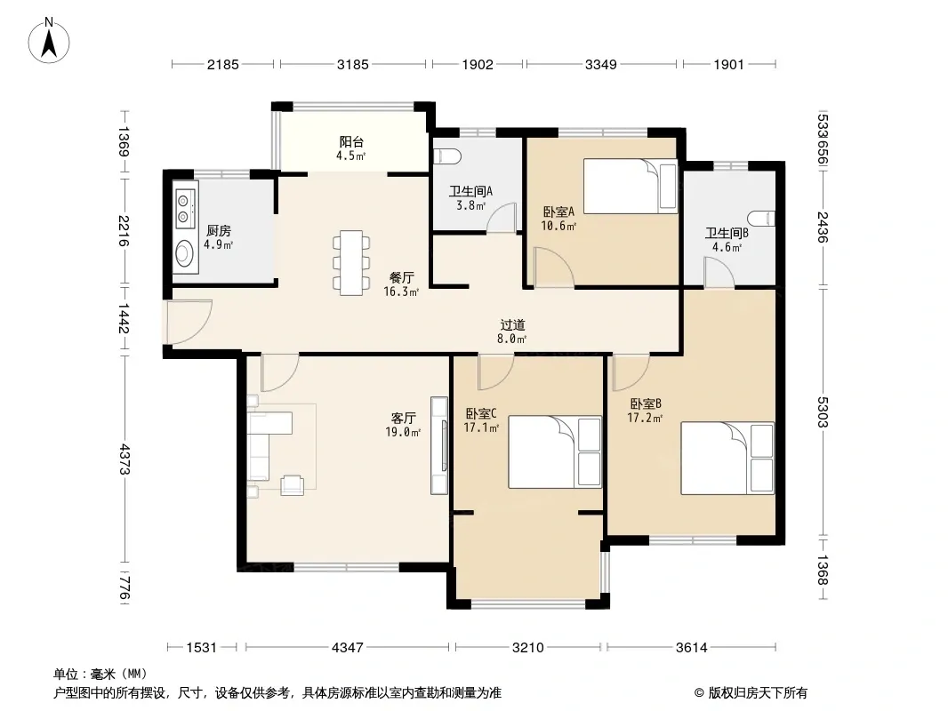 地铁口芒果大三房,南北通透,春华