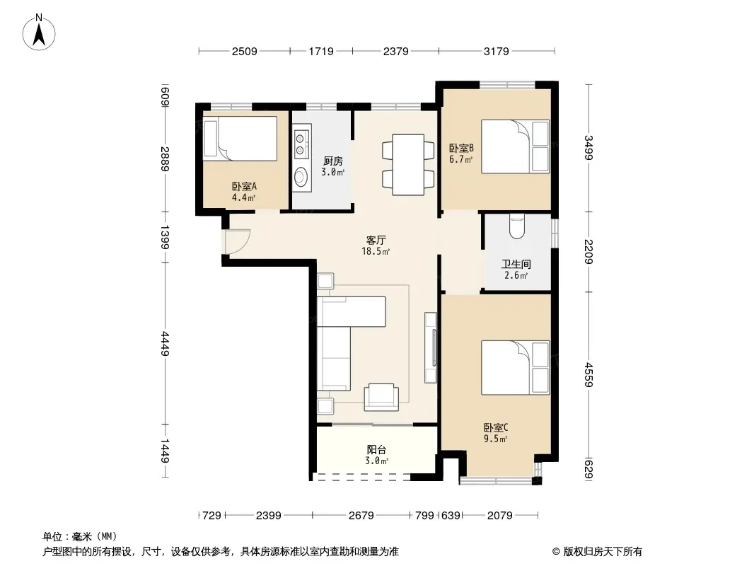 户型齐全,主打南北通透,全明格局,采光充足三居