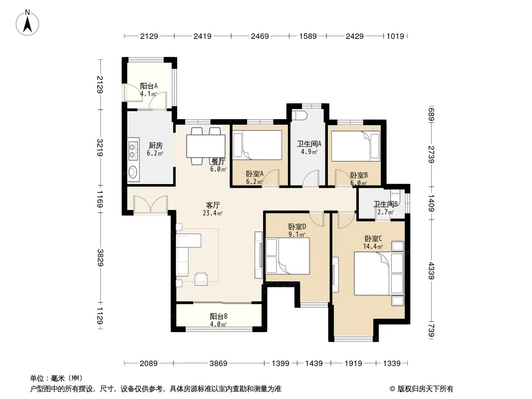 户型齐全,主打南北通透,全明格局,采光充足三居